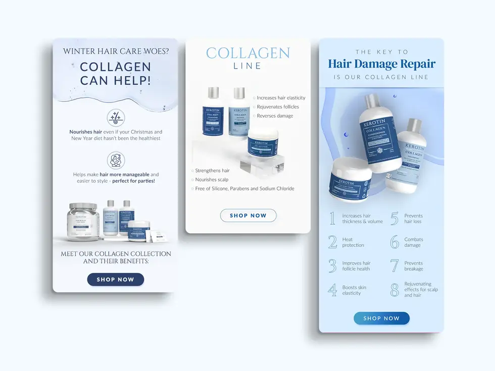 I created a new visual ID for the e-mail marketing campaigns of the brands Kerotin, Black Magic, Chemix, and SWS.